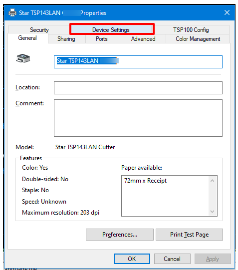 Next, click on the Printer Properties link and a window will open. From here, select the Device Settings tab.