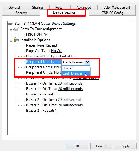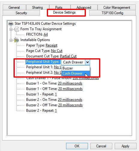 Under Installable Options, find the Peripheral Unit Type and change it to ‘Cash Drawer’.